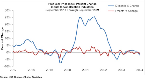 Construction input prices decreased 0.9% in September compared to the previous month, according to an Associated Builders and Contractors analysis of U.S. Bureau of Labor Statistics’ Producer Price Index data. Nonresidential construction input prices also decreased 0.9% for the month.