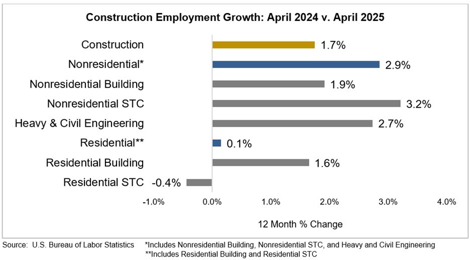 The construction industry added 11,000 jobs in April, according to an Associated Builders and Contractors analysis of U.S. Bureau of Labor Statistics data. On a year-over-year basis, industry employment has grown by 143,000 jobs, an increase of 1.7%.